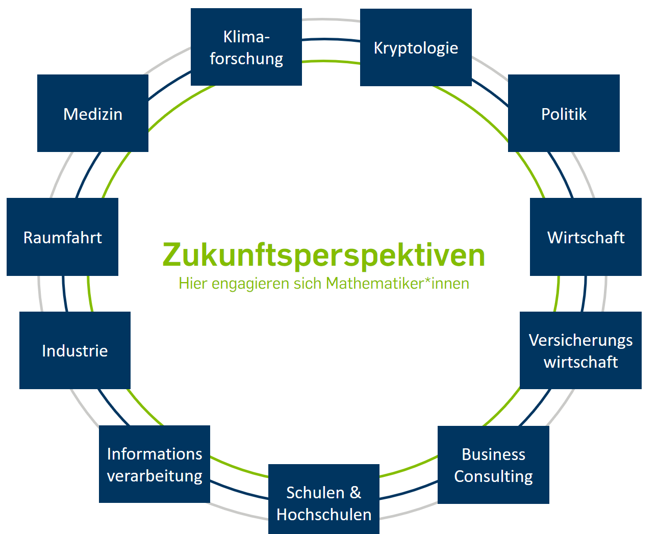 With a degree in mathematics in your pocket, you have excellent prospects for the future. You are in great demand on the job market, because employers appreciate your sharp intellect, which helps you to meet challenges with an open mind. You are rightly expected to familiarize yourself quickly with new fields, to look at problems from all sides, to structure complicated issues in a meaningful way and to find solutions.