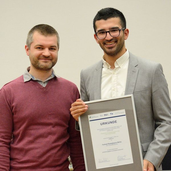 Farhad Razeghpour hat für seine Masterarbeit "STACK-Aufgaben im Analysis-Unterricht" den Förderpreis Lehrerbildung Ruhr 2022 erhalten. Ausgezeichnet wurden insgesamt zwei exzellente und besonders praxisorientierte Abschlussarbeiten aus der Universitätsallianz Ruhr (Ruhr-Universität Bochum, TU Dortmund, Universität Duisburg-Essen). Die Masterarbeit wurde von Frau Prof. Dr. Katrin Rolka und Herrn Dr. Michael Kallweit betreut.