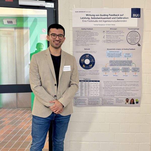 Am 27.3. und 28.3.2025 fand an der Bergischen Universität Wuppertal die Frühjahrestagung des GDM-Arbeitskreises "Affekt, Motivation und Beliefs" statt. Aus unserer Arbeitsgruppe nahm Farhad Razeghpour teil und stellte ein Poster mit dem Titel "Wirkung von Guiding Feedback auf Leistung, Selbstwirksamkeit und Calibration: Eine Feldstudie mit Ingenieursstudierenden" vor.